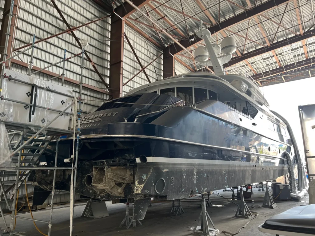 Her new ownership had brought her here to Starboard Yacht Group for another refit that would include a stabilization package and an evaluation of her engines and drives.