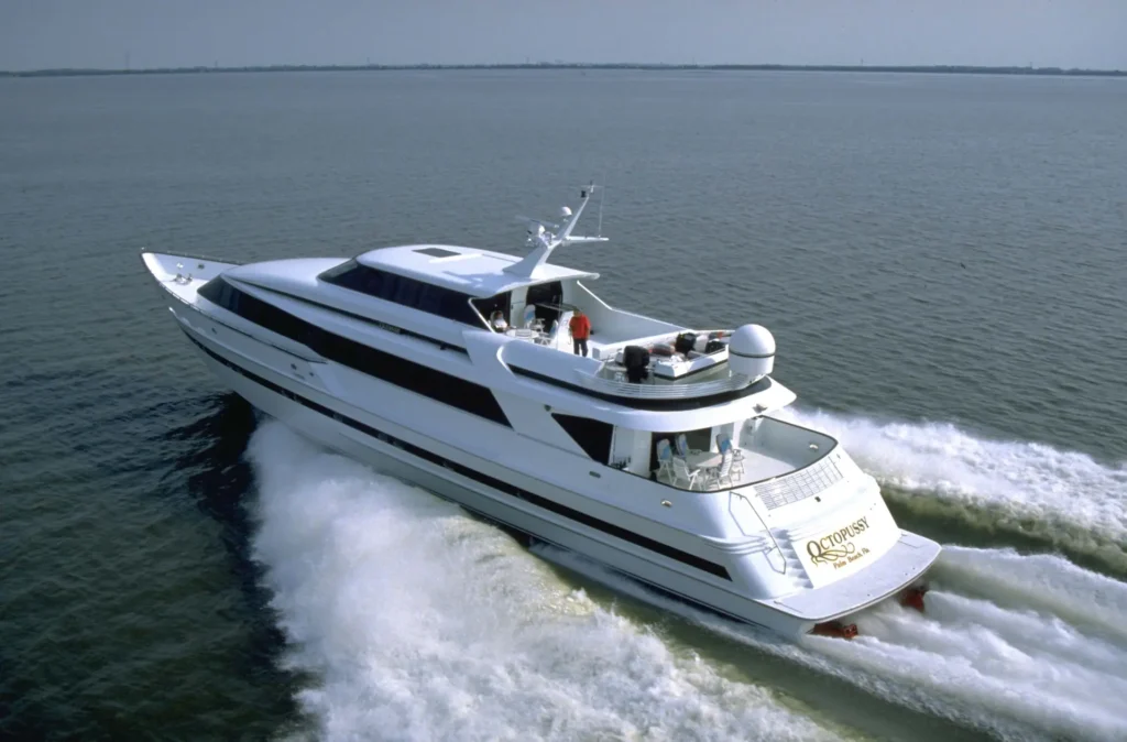 Envisioned in the mid 1980s by her first owner, John Staluppi, an American entrepreneur known for his love for speed and James Bond films, Octopussy was designed and built from the ground up to be the fastest superyacht in the world. But Staluppi wanted more than just to be the fastest; he wanted a yacht over 100 feet in length that would top 50 knots.